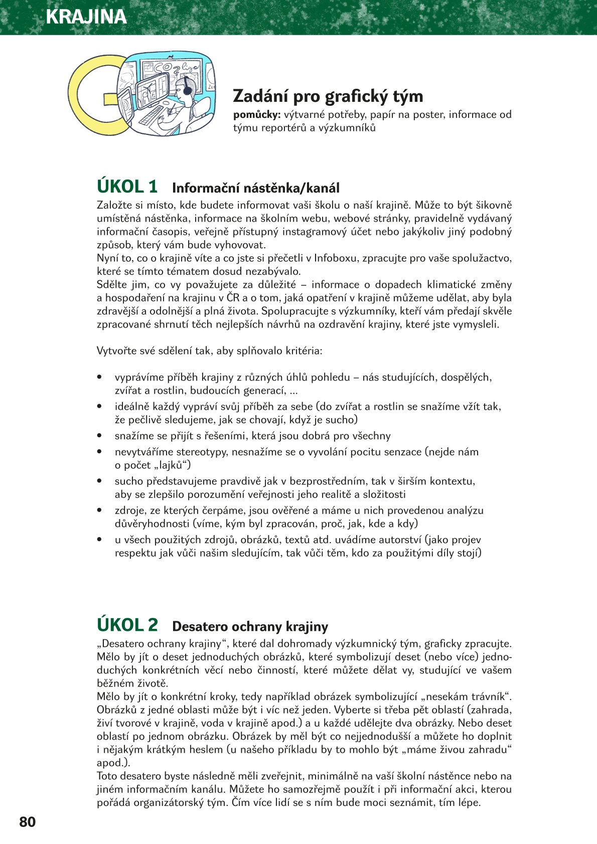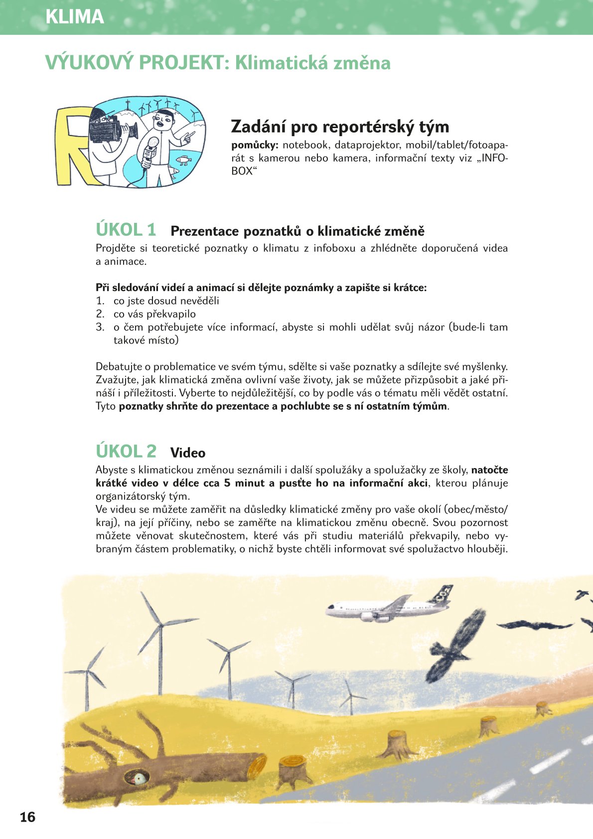 Věříme, že vám sdílené tipy na úkoly přinesou inspiraci pro zařazení důležitého, nelehkého a naléhavého tématu klimatické krize do školní výuky i jiných aktivit, a vážíme si vás všech, kteří se o to snažíte.