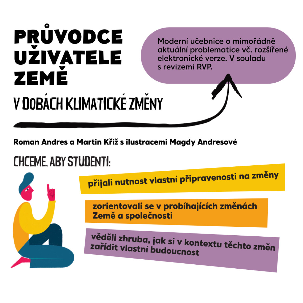 - Seminář je určen učitelům středních škol, kteří mají zájem odpilotovat ve výuce Příručku uživatele Země v době klimatické změny. Středoškolskou učebnici, která jde napříč předměty a která pomůže žákům pochopit problematiku klimatu a nastíní podobu toho, jak budeme bydlet, jak jíst, jak nakupovat nebo jak se připravit na extrémy počasí.